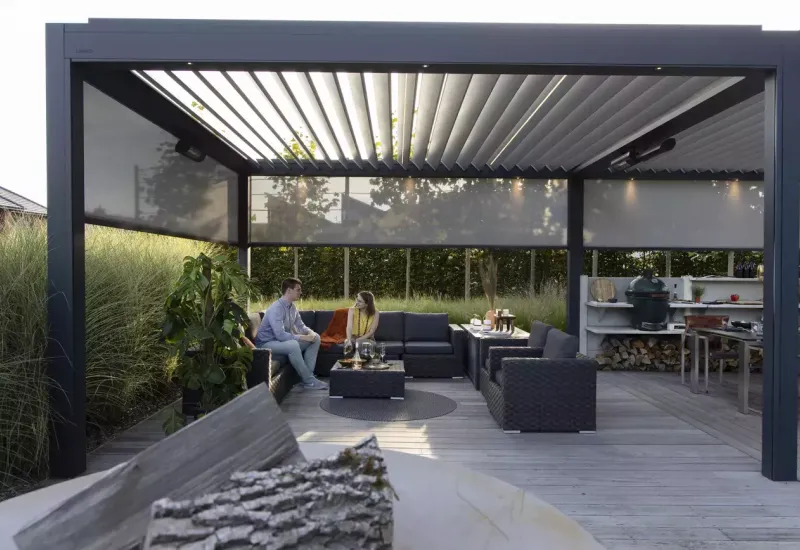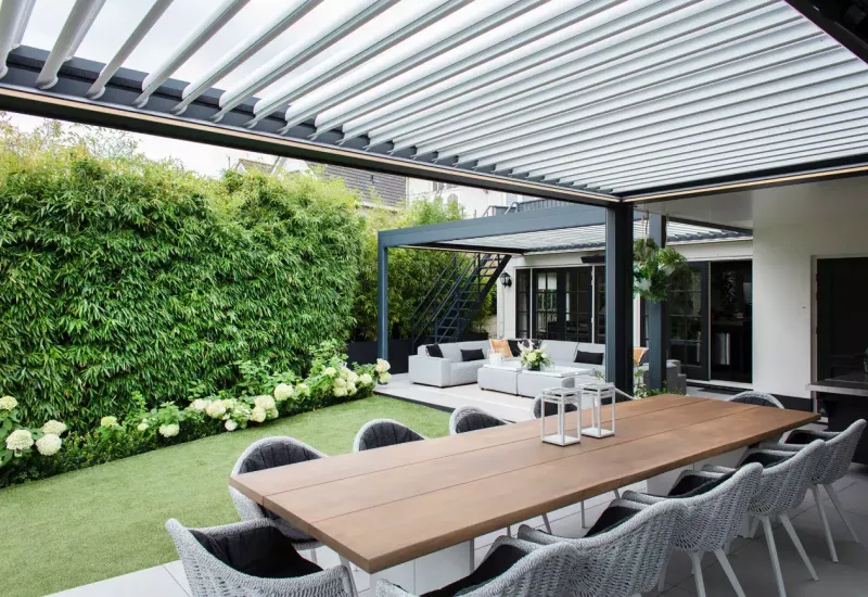 En pergola med skydetag er ideel, hvis du ønsker fleksibilitet. Du kan åbne taget for at få sol og frisk luft eller lukke det, når vejret skifter. Det er en perfekt løsning for dem, der vil have det bedste fra begge verdener.